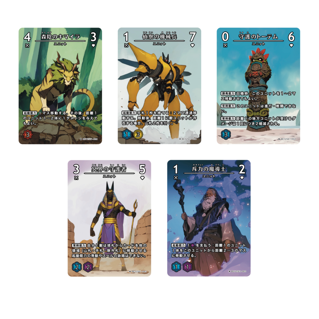 攻撃・妨害・移動・生産・強化、それぞれのタイプで際立つ強力な新カードを多数収録。山札から特定のユニット・スペルを手札に加えるカードの登場で、戦略の再現性はさらに高まる。