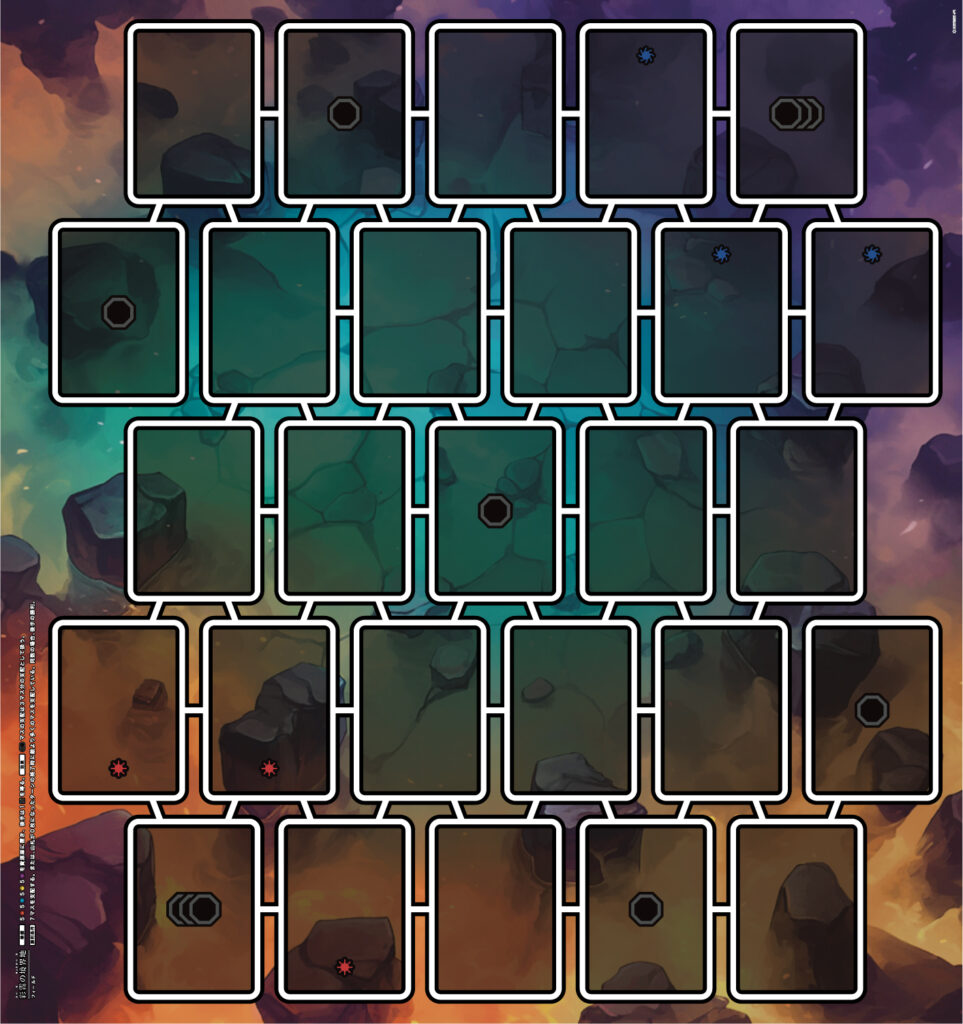 [勝利条件]連結した5マスを支配する。または、山札が0枚になったターンの終了時に敵より多くのマスを支配している。